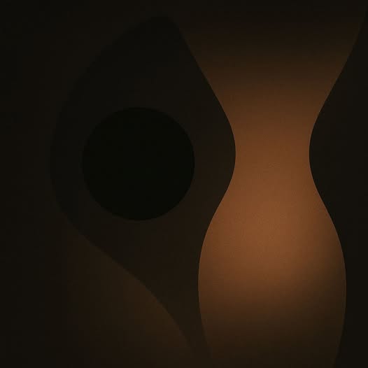 黑圓外,是一層溫暖的褐金色曲線,像兩個場域交疊、彼此牽引。