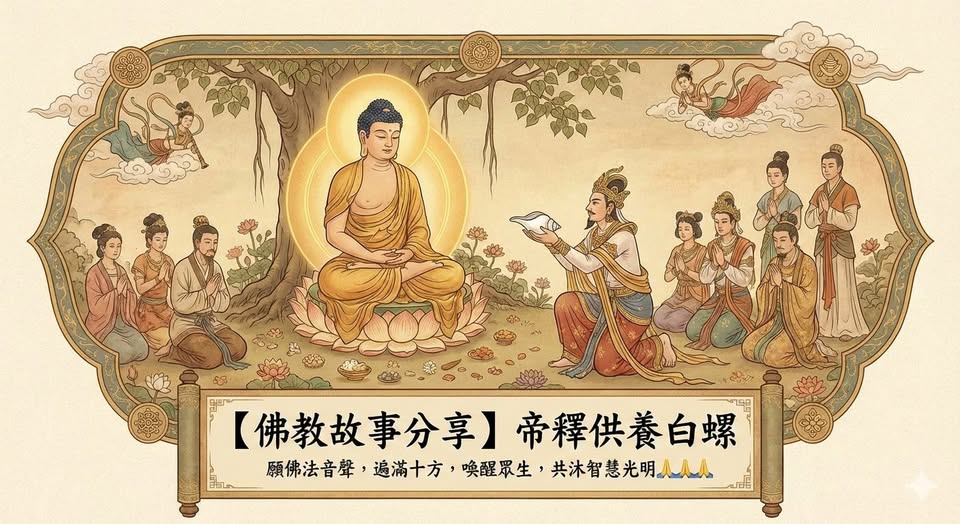 💁🏻‍♀️在經典的主要敘事裡,大梵天王是最先祈請佛陀轉法輪的,而帝釋天則是隨後供養白螺,兩者共同完成了「天神勸請佛陀轉法輪」的殊勝因緣。