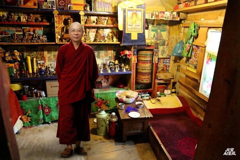 轉經輪旁的供燈燃著柔黃的火,火焰細細顫動,像在替誰守候。香氣在空氣裡散開,帶著木質的溫暖與一點點乾草味,讓人不自覺放慢呼吸。這些景物彼此不語,卻像在共同訴說一件事:修行並不需要巨大的力量,只需要願意開始的那一瞬。